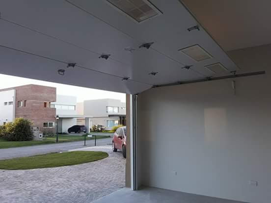 Nuestros Portones abren verticalmente hacia arriba y se pliegan paralelamente al techo, optimizando al máximo el espacio de la cochera.